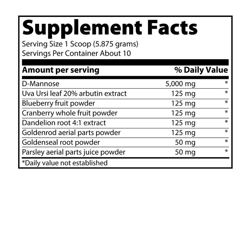 U.T. Vibrance combines 5000 mg of D-Mannose per serving with botanicals traditionally used for urinary tract support: including cranberry, blueberry, dandelion root, and uva ursi leaf.